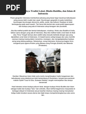 14 contoh akulturasi budaya di indonesia merupakan percampuran dua budaya hal ini yang membuat budaya di indonesia semakin beragam dalam banyak hal. Bentuk bangunan candi di indonesia pada umumnya adalah bentuk akulturasi antara unsur budaya hindu budha dengan budaya lokal asli indonesia. Masuk dan berkembangnya budaya india ke indonesia membawa pengaruh yang sangat besar yang menyebabkan interaksi sehingga menciptakan berbagai jenis kebudayaan yang merupakan perpaduan antara budaya india dengan indonesia diantaranya adalah. Syarat masuk islam sangat mudah yakni cukup mengucapkan kalimat syahadat. Candi borobudur merupakan salah satu contoh dari bentuk akulturasi tersebut. Contoh seni hias yang berupa relief pada dinding candi di indonesia menunjukkan adanya akulturasi antara budaya indonesia dan hindu budha.