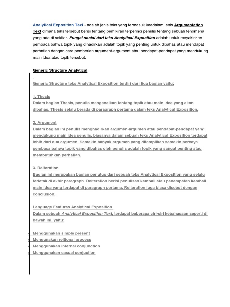 Nah untuk kali ini contohtext tak akan membahas mengenai definisi struktur ataupun ciri kebahasaan namun hanya akan memberikan sanalytical contoh teks analytical exposition. But nothing has been done.