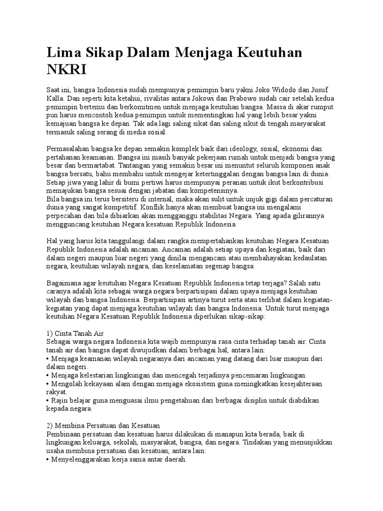 Contoh ancaman terhadap nkri. Contoh ancaman terhadap nkri yang berasal dari luar negeri yang pertama adalah ancaman sosial budaya. Ancaman terhadap negara kesatuan republik indonesia saat ini ancaman adalah setiap usaha dan kegiatan baik dari dalam negeri maupun luar negeri yang dinilai membahayakan kedaulatan negara keutuhan wilayah negara dan keselamatan segenap bangsa. Bentuk ancaman militer dan non militer bagi nkri ancaman adalah setiap usaha dan kegiatan baik dari dalam negeri maupun luar negeri yang dinilai membahayakan kedaulatan negara keutuhan wilayah negara dan keselamatan segenap bangsa. Berikut yaitu contoh sebuah kasus ancaman di bidang ideologi. Ancaman sosial budaya yang datang dari luar negeri adalah misalnya saja ancaman dari propaganda peredaran narkoba film prno disinformasi yang bisa mengancurkan moral dan bangsa indonesia. Ancaman terhadap bangsa dan negara indonesia terdiri atas ancaman militer dan ancaman non militer.