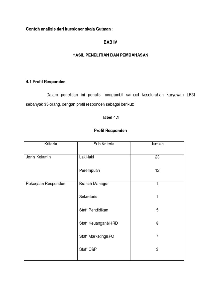 Bab iv hasil penelitian dan pembahasan download abstrak lik disini download bab i download bab ii download bab iii download bab iv download. Proses pelaksanaan penelitian a. Bab iv hasil penelitian dan pembahasan a. Bab iv hasil dan pembahasan hasil dan pembahasan dalam penelitian kualitatif agak sulit untuk dibedakan dan dipisahkan karena sifat dari informasi yang diperoleh maka bagian hasil dan bagian pembahasan disatukan. 42 pembahasan 412 pengertian terhadap gangguan jiwa pribadi yang berbedabeda membuat perbedaan pula dalam mempersepsikan orang lain. Bab iv hasil penelitian dan pembahasan 41 hasil penelitian dalam bab ini akan dibahas mengenai hasil penelitian studi lapangan yang dimulai dari statistik deskriptif yang berhubungan dengan data penelitian meliputi gambaran umum responden variabel penelitian uji kualitas data uji.