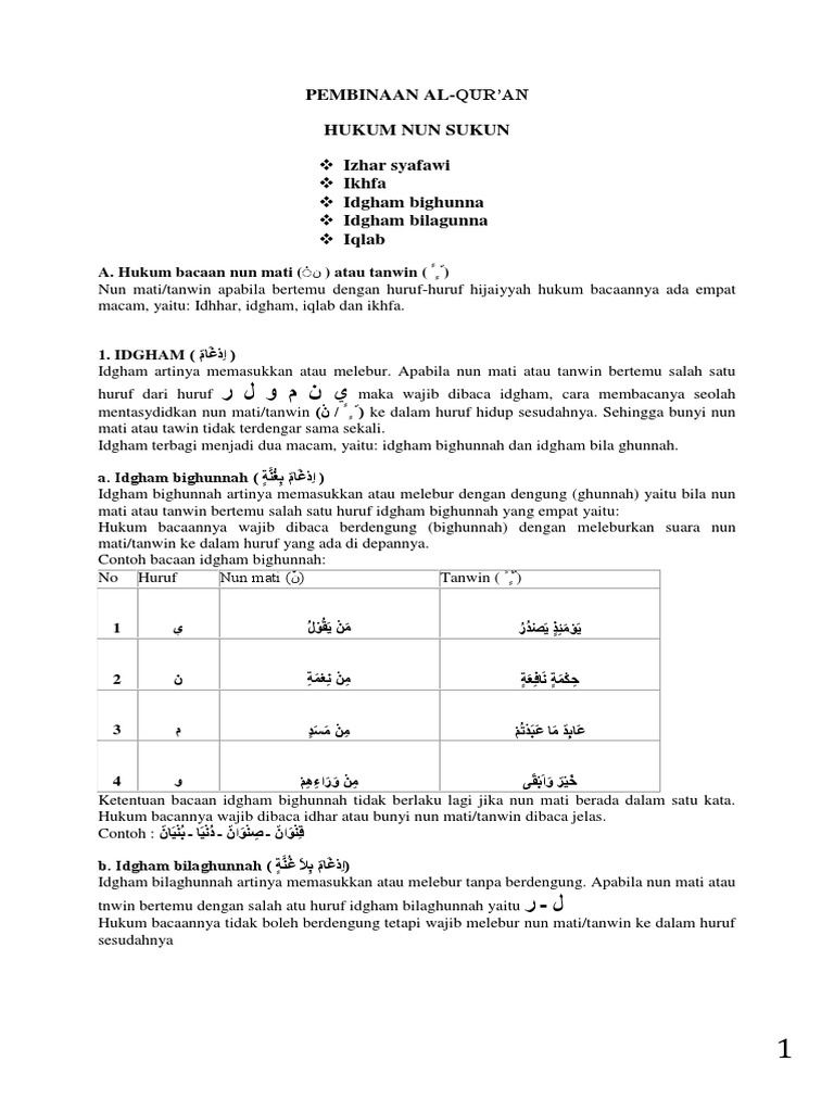 Contoh contoh bacaan yang dapat dilihat dari idgham bigunnah ini ada beragam jenis yang kesemuanya hampir dijumpai pada semua surat dalam al quran. Contoh hukum idgham bilaghunnah. Tulisan aslinya adalah lathii fun li maa tetapi dibaca lathii fulli maa قلي ل ل يصبح. Berikut ini akan kami jelaskan tentang pengertian huruf cara membaca dan juga contohnya. Idgham bilagunnah adalah salah satu cara membaca hukum tajwid nun mati dan tanwin untuk membaca al quran dengan baik dan benar. Cara membaca dari idgham bighunnah yaitu dengan cara meleburkan ن nunt mati ataupun tanwin baik itu dhommah tanwin.