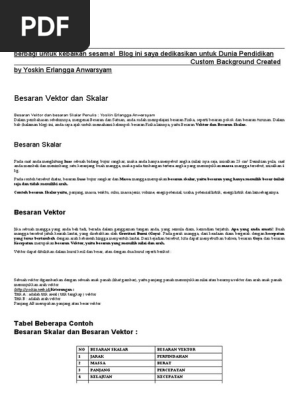 Contoh besaran vektor dan skalar dalam kehidupan sehari hari. Sementara besaran vektor adalah besaran yang mempunyai arah. Pengukuran tidak hanya terbatas pada kuantitas fisik tetapi juga dapat diperluas untuk mengukur hampir semua benda yang bisa dibayangkan seperti tingkat ketidakpastian atau. Aplikasi vektor bendera seperti sudut 90 derajat. Besaran dan satuan dimensi angka dan penting. Besaran dalam fisika besaran turunan dan besaran pokok yoskin erlangga anwarsyam 1 desember 2010. Konsep vektor dapat kita jumpai dalam kehidupan sehari hari.