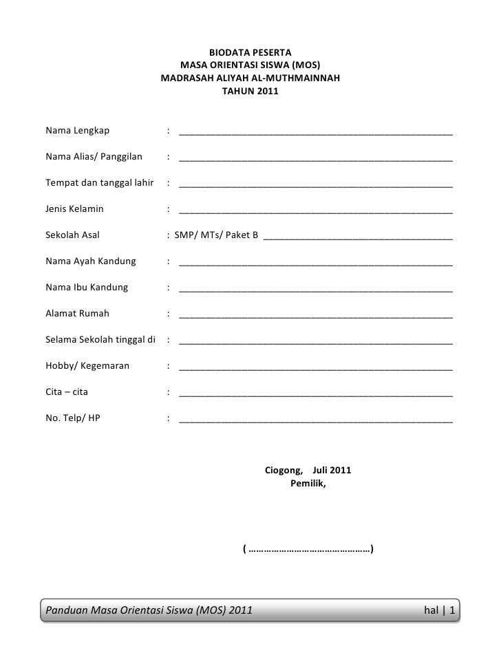 Contoh biodata siswa sd. Format biodata siswadoc andapun kami persilahkan melihatnya melalui informasi yang telah disampaikan pada tulisan sebelumnya yaitu di contoh biodata siswa sd smp sma akhir kata kami ucapkan semoga contoh biodata siswa sd tahun 2017 di atas bisa menjadi acuan yang baik dan benar terkait dengan contoh formatnya. Kali ini akang akan berbagi format aplikasi pendataan biodata siswa sd dan mi yang insyaallah akan sangat membantu wali kelas mendata kelengkapan biodata anak didiknya dengan mudahformat aplikasi biodata siswa sd dan mi ini berpondasi pada program microsoft office excel dan juga sudah support untuk digunakan di microsoft office 2013. Bukan saja sekedar untuk memahaminya sebagai materi kelas atau materi pelajaran lebih dari itu biodata pribadi juga sangat penting untuk kita ketika mengajukan diri untuk melamar sebuah pekerjaan menggunakan surat lamaran kerja. Download contoh format buku induk siswa lengkap tkpaud sdmi smpmts smamasmk buku induk siswa adalah kumpulan daftar nama siswa sepanjang masa dari sekolah tersebutmurid baru perlu dicatat segera dalam buku besar yang biasa disebut buku induk siswa atau buku pokok. Bentuk format biodata siswa smp contoh format biodata siswa format biodata siswa sd 1 comment format biodata siswa lengkap doc merupakan berkas yang digunakan untuk pendataan biodata siswa sd smp sma secara detail guna keperluan yang berhubungan dengan identitas siswa secara keseluruhan dimulai dari. Jadi apabila anda sudah terbiasa dengan microsoft.