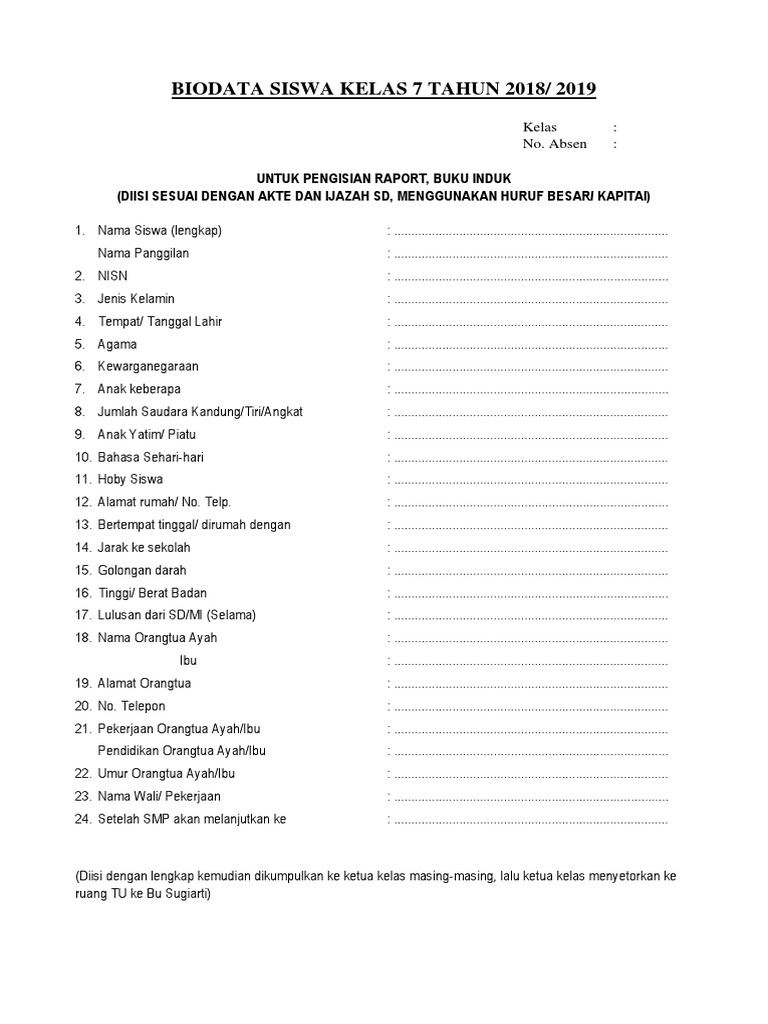 Contoh format biodata peserta didik jenjang pendidikan sd smp sma melalui artikel ini anda bisa mendapatkan semua format untuk contoh biodata peserta didik yang bisa anda gunakan sebagai pelengkap administrasi guru maupun administrasi perkantoran di sekolah kan biasanya biodata peserta didik ini dibuat oleh tata usaha yang nantinya diberikan kepada setiap guru di jenjang pendidikan dan. Format data siswa biodata siswa excel sd smp sma ini merupakan file terbaru yang akan saya bagikan dalam kesempatan kali ini. Contoh biodata diri siswa anandhika arifianto nama panggilan. Contoh biodata diri seseorang akan diketahui apa saja mengenai tentang dirinya dengan mengetahui biodatanya jadi biodata ini merupakan semua hal yang berkaitan dengan informasi mengenai seseorang. Format ini dibuat dalam aplikasi excel yang secara khusus dibuat untuk kebutuhkan wali kelas atau guru kelas untuk menampung data siswa biodata lengkap mulai dari nis nisn nama siswa usia alamat jk nama orang tua pekerjaan alamat dan data pelengkap lainnya. Kumpulan contoh yang kami bagikan tidak hanya membahas tentang biodata diri untuk melamar kerja melainkan juga contoh biodata siswa dan contoh biodata mahasiswa yang bisa anda lihat pada daftar biodata berikut ini.