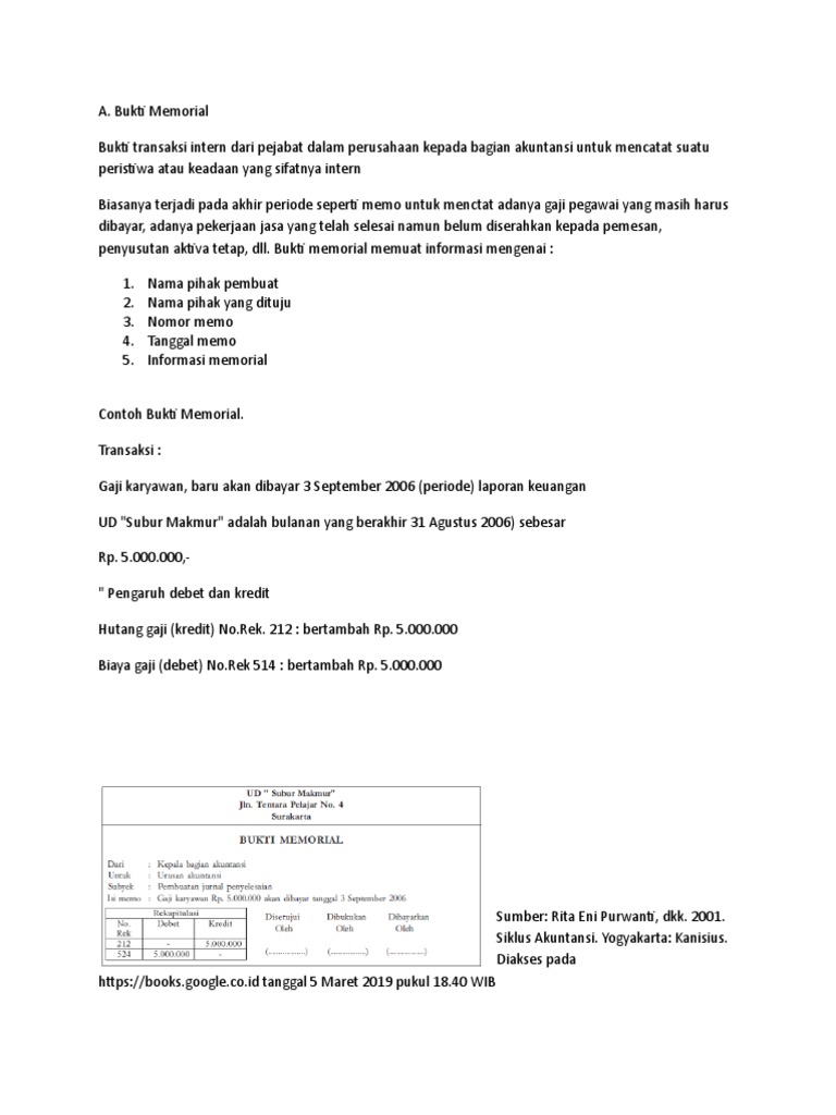 Bukti memorial merupakan bukti transaksi intern dalam bentuk memo dari pejabat dalam perusahaan kepada bagian akuntansi untuk mencatat suatu peristiwa atau keadaan yang sifatnya intern. Bukti memorial sebagai ilustrasi perhatikan contoh bukti transaksi berikut ini. 12 contoh bukti transaksi beserta gambar dan pengertian transaksi terlengkap transaksi adalah suatu aktivitas perusahaan yang menyebabkan perubahan pada posisi harta keuangan perusahaan seperti menjual membeli membayar gaji dan lain sebagainya. Bukti transaksi intern adalah bukti transaksi yang berasal dan dilakukan didalam lingukungan perusahaan itu sendiri sehingga tidak melibatkan pihak luar perusahaan. Administrasi transaksi adalah suatu kegiatan mencatat berbagai perubahan posisi keuangan dari suatu perusahaan secara kronologis dengan metode. Bukti transaksi tersebut terdiri dari faktur nota kwitansi dan cek nota kontan bukti setoran bank bilyet giro nota debet nota kredit rekening koran bukti memo bukti kas masuk bukti kas keluar.