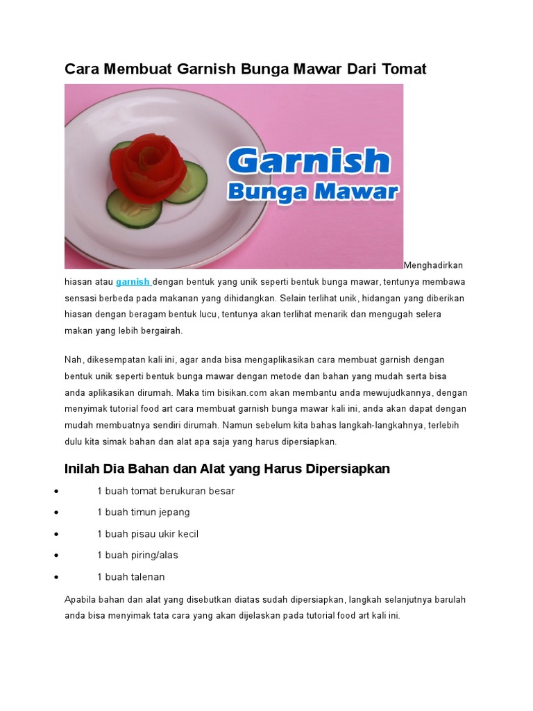 Cara Membuat Garnish Bunga Mawar Dari Tomat Docx Document