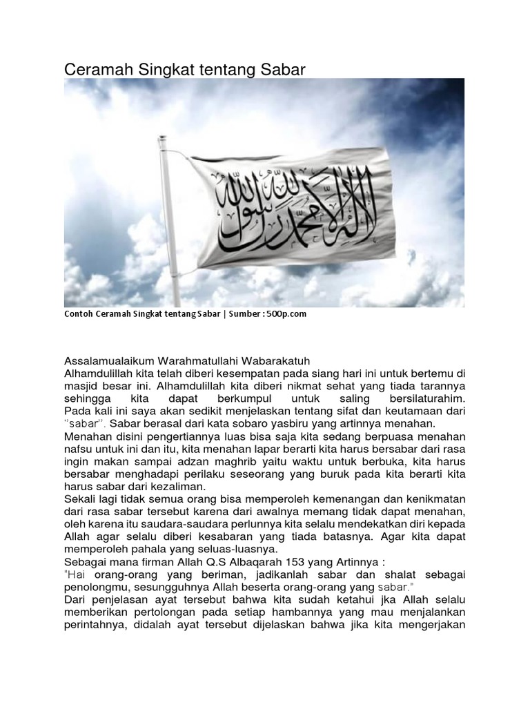 Jika hal itu terjadi yang harus kita lakukan adalah bersabar sembari merencanakan ulang. Kita tahu bahwa sabar adalah sebuah amalan yang paling susah didapat namun memberikan arti yang sangat besar akan kehidupan. Berikut ini teks ceramah agama tentang sabar singkat. Mulai dari contoh ceramah pendidikan contoh ceramah singkat sabar contoh ceramah tentang ibu contoh ceramah pergaulan bebas contoh ceramah menuntut ilmu contoh ceramah singkat tentang narkoba contoh ceramah kebersihan contoh ceramah kesehatan contoh ceramah media sosial contoh ceramah contoh ceramah tentang aurat contoh ceramah tentang. Berikut ini adalah contoh ceramah singkat. Pada kesempatan ini saya akan memberikan contoh teks ceramah agama tentang sabar.