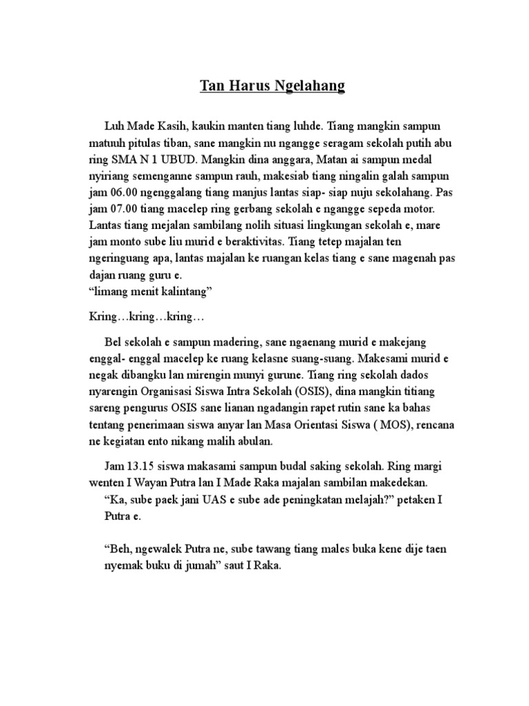 Contoh cerpen lucu tamat baca juga. Kumpulan cerpen bahasa bali om swastiastu kali ini saya ingin berbagi beberapa cerpen cerita pendek berbahasa bali. Suksma sane sampun nyingakin contoh cerpen bahasa bali nikistiap nambah terus viewer niki. Contoh cerpen basa bali lebih lengkap contoh cerpen basa bali bisa di donlot disini atau disini. 4 4 mendukung tandai dokumen ini sebagai bermanfaat 0 0 menolak tandai dokumen ini sebagai tidak bermanfaat tanamkan. Yén cara i raga ané ketah kaja kelod kangin kauh ento tuah mata angin utawi pangider buana patuh tekén bahasa indonésiané.