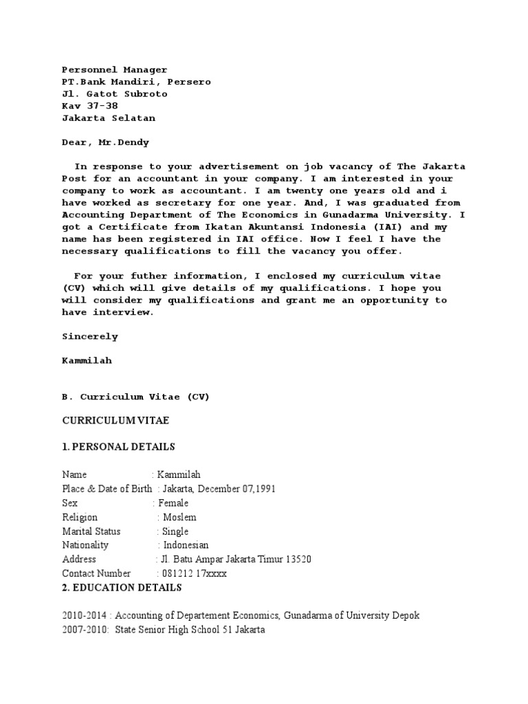 Pt bank mandiri persero tbk. Cover letter and resume pierre lianing putri rohadi. Terus ada bagian cover letter istilahnya surat lamaran gitu buat bank mandiri nah trik nya nih mending lo tulis semua dan rangkai apa aja yg diminta di form pendaftaran itu dalam bahasa indonesia. Nah sebelum kamu mengirim surat lamaran yuk perhatikan contoh penulisan cover letter.