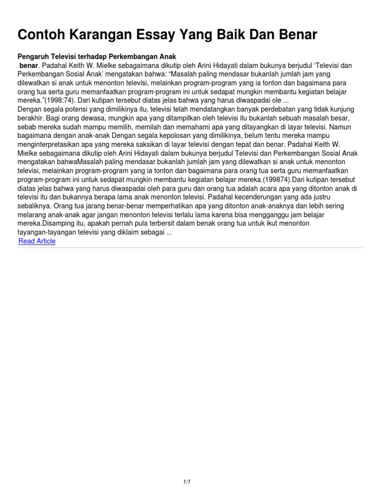 Contoh esai yang baik. Untuk yang sudah terbiasa dan expert bisa juga menambahkan solusi pada bagian akhir. Kedua berisi fakta atau berita yang tersaji. Salah satunya essay yang sudah tak asing lagi di ranah para penulis. Essay merupakan sebuah uraian tentang suatu tema atau masalah tertentu dengan tujuan tertentu dilihat dari suatu sudut pandang yaitu sudut pandang penulis itu sendiri. Contoh esai singkat yang baik dan benar dalam postingan kali ini kami hanya akan memberikan contoh esai singkat saja bagi anda yang ingin mengetahui pengertian dan cara menulis esai silahkan kunjungi tautan biru tersebut. Contoh essay kita pasti sering mendengar kata essay namun tidak bisa menjelaskan secara spesifik apa pengertian dari essay itu sendiri.