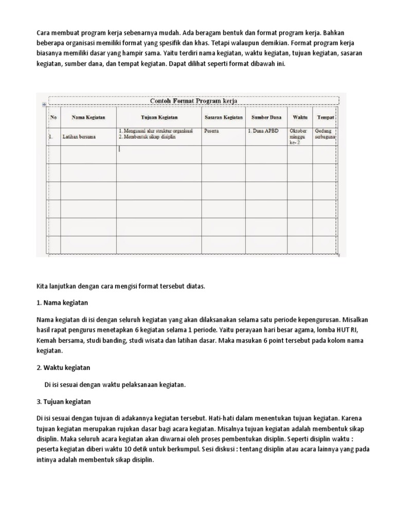 Contoh format program kerja organisasi. Mohon maaf untuk teman teman yang request rancangan program kerja. Program kerja pengertian tujuan manfaat jenis tahapan program kerja menjadi komponen penting bagi organisasi dalam mencapai sebuah tujuan. Mengadakan kunjungan non formal ke ppi cabang. Program kerja ini didasarkan pada upaya pemecahan setiap hambatan dan permasalahan yang terjadi dengan menetapkan arah kebijaksanaan sebagai landasan program kerja sehingga dalam rangka mengoptimalkan pencapaian tujuan dan misi organisasi yang hendak dicapai aparat. Ppi uk goes to ppi cabang waktu pelaksanaan. Program kerja dapat diartikan sebagai suatu rencana kegiatan dari suatu organisasi yang terarah terpadu dan tersistematis yang dibuat untuk rentang waktu yang telah ditentukan oleh suatu organisasi.