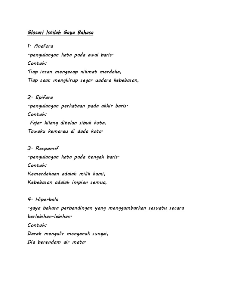 Contoh gaya bahasa hiperbola. Contoh gaya bahasa hiperbola 1. Pembahasannya sering kita temukan dalam pelajaran bahasa indonesia dihampir semua tingkatan baik itu sd smp sma maupun perguruan tinggi. Agar kita lebih memahami gaya bahasa hiperbola kita perlu memperhatikan contoh penggunaannya. Gaya bahasa yang menarik tentunya akan. Bulan kini bukan lagi menara kasih jernih terbenam di kaki hari. Jenis gaya bahasa ini sering digunakan untuk meluahkan perasaan mahupun tanggapan secara melampau.