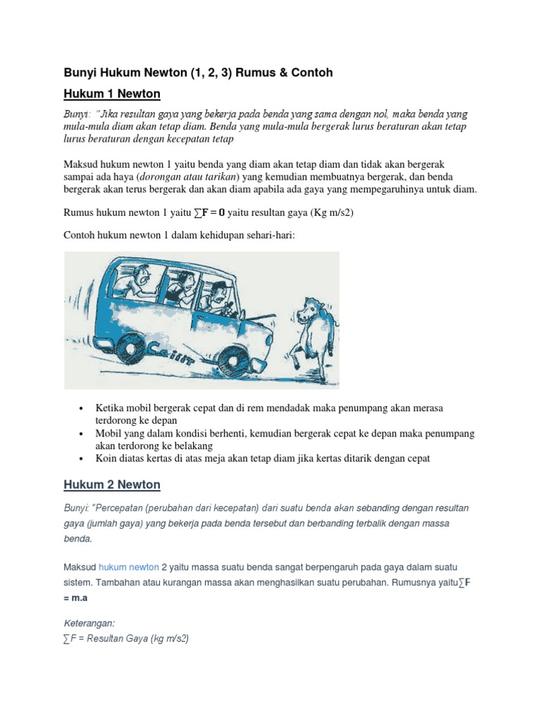 Contoh hukum newton 1 2 3. Bunyi hukum newton 1 2 3 banyak sekali materi menarik yang bisa diperoleh ketika mempelajari fisika oleh karena itu mata pelajaran ini menjadi salah satu yang difavoritkan oleh banyak orang. Pembahasan yang sangat lengkap untuk menjelaskan hukum newton. Hukum newton 1 2 3 pengertian bunyi rumus contoh soal by bapak dosen hukum newton hukum newton murupakan suatu hukum yang ada dalam dunia fisika yang menggambarkan hubungan antara suatu gaya yang bergerak dikarenakan adanya sebab. Dalam dunia fisika terdapat banyak juga rumus rumus untuk memecahkan sebuah persoalan. Sampai jumpa di artikel selanjutnya kunjungi terus rumuscoid banyak artikel menarik disana. Contoh hukum newton 2 contoh 1 hukum newton 2.