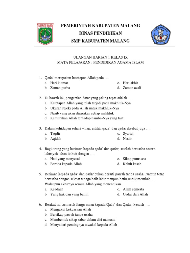 Pengertian iman kepada qada dan qadar. Masalah hasil itu adalah urusan allah swt. Menurut bahasa qada artinya a. Qada artinya ketetapan allah swt kepada setiap mahluk nya yang bersifat azali. Yakin terhadap qada dan qadar dari allah karena pada hakikatnya qada dan qadar tersebut sangat logis masuk akal. Berilah tanda silang x pada huruf a b c d atau e yang d.