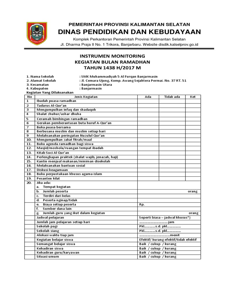 Instrumen yang lengkap dan menyeluruh mencakup aspek aspek yang akan dimonitor dan dievaluasi pedoman monev dit. Instrumen monev ini bisa digunakan untuk semua tingkatan sekolah mulai dari sdmi smpmts smasmkma. Sedangkan download surat tugas monev juga dalam bentuk file yang sama akan tetapi secara kolektif. Kegiatan ini dimulai sejak awal bulan mei tahun 2012 hingga saat ini dengan menyusun instrument monitoring dan evaluasi pendidikan. Dalam format microsoft office words tahun 2007. Diambilkan dari file surat tugas monev kanwil kemenag jawa tengah.