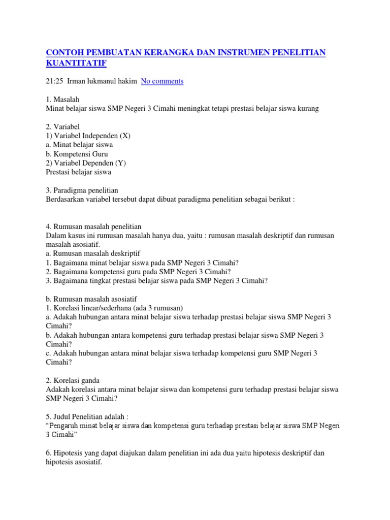 Contoh instrumen penelitian kuantitatif. Dua hal itu adalah. Penelitian kuantitatif mengambil jarak antara peneliti dengan obyek yang diteliti menggunakan instrumen instrumen formal standar dan bersifat mengukur. Hasi instrumen penelitian ini kemudian dikembangkan atau dianalisa sesuai dengan metode penelitian yang akan diambil. Berisi contoh proposal penelitian kualitatif dan kuantitatif. Instrumen penelitian adalah aspek pengumpulan data yang dilakukan dalam penelitian ilmiah. Pengumpulan data penelitian kuantitatif merupakan pengumpulan data yang datanya bersifat angka angka statistik yang dapat di kuantifikasi.