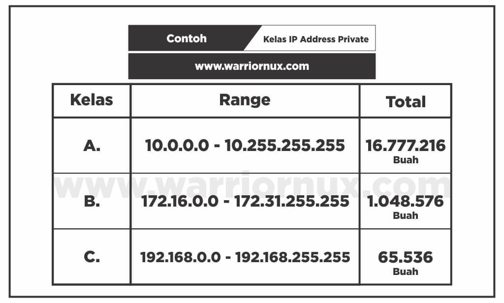 Ip address private merupakan ip address yang dipakai oleh komputer maupun perangkat yang terkoneksi seerta pada umumnya dipakai oleh jaringan yang berskala lokal lan. Ip address sebanyak ini harus dibagi bagikan keseluruh pengguna jaringan internet di seluruh dunia. Karena ip address pada contoh tersebut adalah ip address kelas b maka hostnya yang nanti jadi acuan buat perhitungan adalah 8 jadi cara menghitungnya adalah 18 8 sehingga 18 8 26 angka 8 ini didapatkan dari oktet ke 4 yang berjumlah 8.