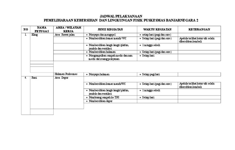 Contoh kerangka acuan pengelolaan air bersih rs. Membersihkan kaca bagian dalam dan luar 5. Secara umum ada dua sistem jam kerja yang diterapkan perusahaan di indonesia yakni full time dan shift. Contoh sk untuk tenaga harian lepas di puskesmas. Lowongan kerja medan cleaning service. Mau minta tolong ada yang bisa bantu saya untuk memberikan solusi membuat jadwal 2 shift dengan karyawan 11 orang untuk cleaning serviceterima kasih.