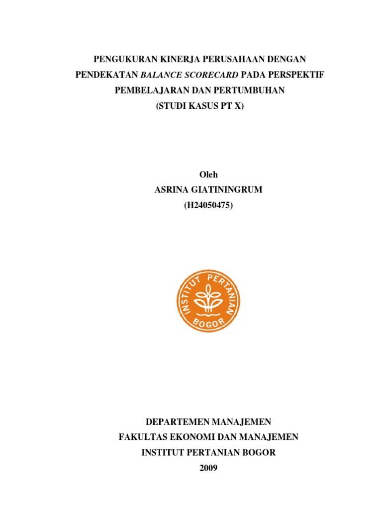 Skripsi ini disusun untuk memenuhi salah satu persyaratan agar dapat mengikuti sidang sarjana strata 1 fakultas ekonomi jurusan akuntansi universitas diponegoro. Pengukuran kinerja dengan balanced scorecard studi kasus pada pabrik gula madukismo dan dimajukan untuk diuji pada tanggal 29 september 2010 adalah hasil karya saya. Dengan ini saya menyatakan dengan sesungguhnya bahwa dalam skripsi ini tidak terdapat keseluruhan atau sebagian tulisan orang lain yang saya ambil. Pengukuran yang lebih baik digunakan yakni balance scorecard. Perusahaan harus membuat sistem pengukuran yang baik dari metode tradisional. Perspektif proses bisnis internal.
