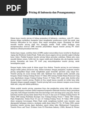 Jumlah ini lebih tinggi dibandingkan dengan sengketa lainnya yang hanya pada kisaran 10. Adaro dimana diduga melakukan manipulasi guna menghindari pembayaran royalti dan pajak yang harusnya dibayarkan ke kas negara akan sangat merugikan negara. Berkaitan dengan itu direktorat jenderal geologi dan sumberdaya mineral meminta direksi adaro tidak melakukan pengalihan saham sampai gugatan tersebut selesai. Metode transfer pricing 3. Revisi peraturan transfer pricing indonesia dari per 43 ke per 32. Transfer pricing adalah kebijakan penentuan harga untuk penjualan barangjasa yang terjadi dalam internal satu perusahaan atau satu kelompok perusahaan.