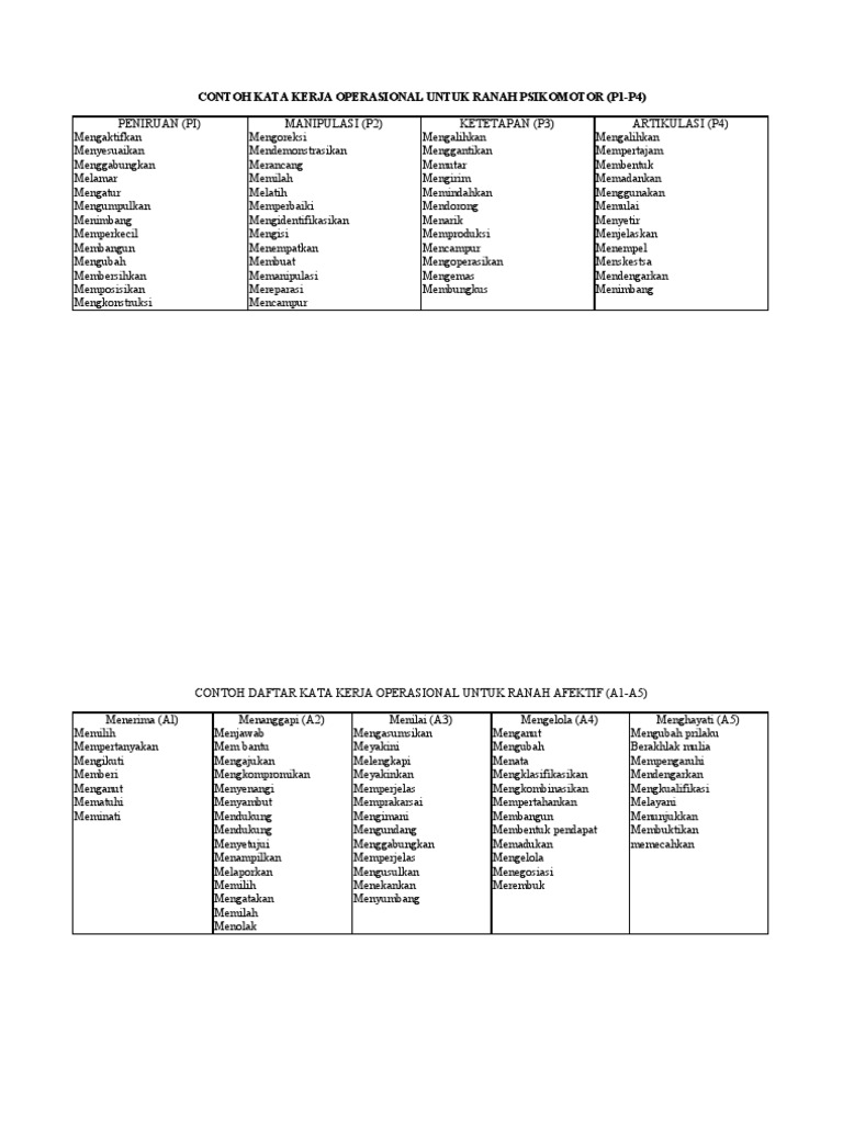 Kata kerja operasional kognitif. Berikut ini adalah contoh kata kerja operasional dari masing masing ranah.