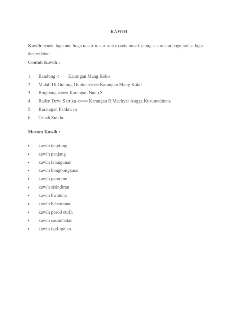 Contoh lagu kawih sunda. Lagam kawih yang terdapat pada tembang adalah pada lagu panambih ekstra. Contoh lagu pupuh ladrang. Dahulu anak anak sunda apalagi yang ada di kotakayaknya sudah langka dan jarang untuk bermain kakawihan supaya tidak kehilangan dan supaya anak anak mengenalnya di setiap daerah itu biasanya tidak akan sama pasti akan ada saja bedanya sedikit dan disini akan di buka contoh mengenai kakawihan anak kecil berupa semua lagu lagu yang anonym. Arti lirik atau syair lagu kawih cing cangkeling bahasa sunda contoh kakawihan sunda dulu lagu lagu kakawihan ini sangat populer dan sering sekali dimainkan khususnya ditatar sunda. Lagu kamari ngagalindeng lalakon gending kadeudeuh. Oh ya bisa juga lihat arti dan lirik lagu kawih sunda lainnya di blog ini klik saja link berikut ini borondong garing.
