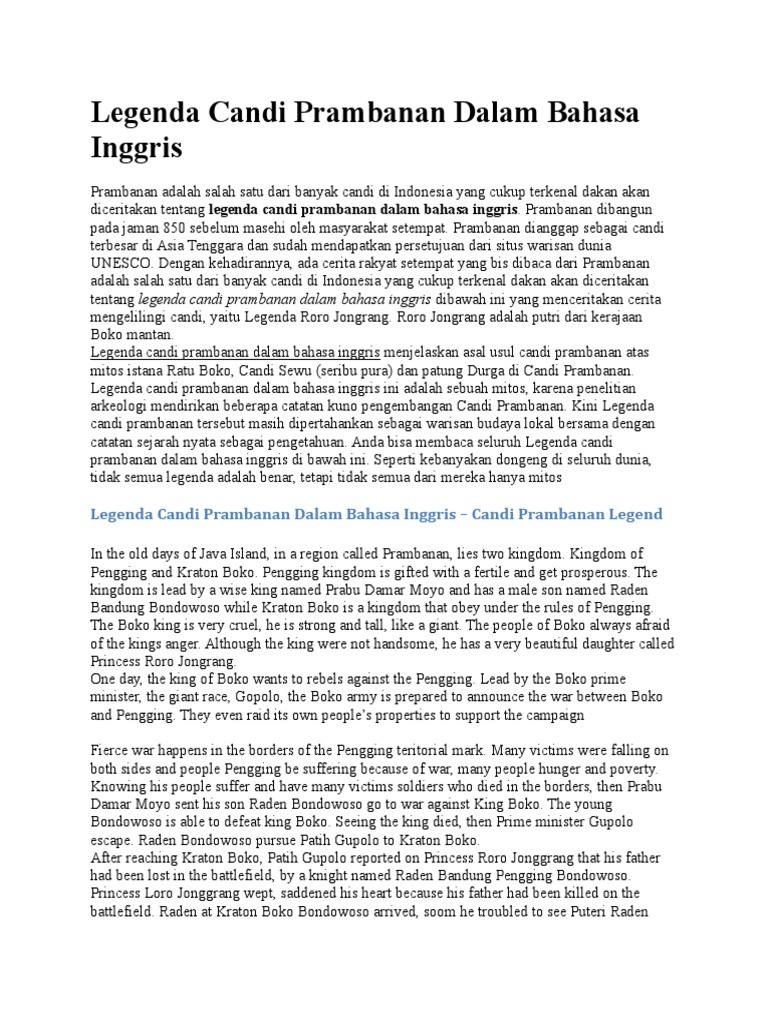 Contoh legenda dalam bahasa inggris. Contoh mitos atau legenda dalam bahasa inggris beserta artinya hai sahabat kbi pada posting sebelumnya admin telah membagikan cerita rakyat dalam bahasa inggris. Contoh narrative text legend alias legenda dalam bahasa inggris yakni terjadinya danau toba batu menangis tangkuban perahu candi prambanan dan selat bali. Once she was weaving a cloth when. Arti dari bahasa inggrisnya disesuaikan dengan kemampuan dan akan diupdate dan diperbaiki jika dianggap perlu. Cerita legenda bahasa inggris ini kami ambil dari berbagai sumber yang mungking bisa membantu kita dalam menambah wawasan kita meskipun konon ada yang mengatakan bahwa sebagian dari legenda legenda itu hanyalah fiktif. Teks narrative ini berhubungan dengan sejarah terjadinya sebuah tempat beserta artinya.