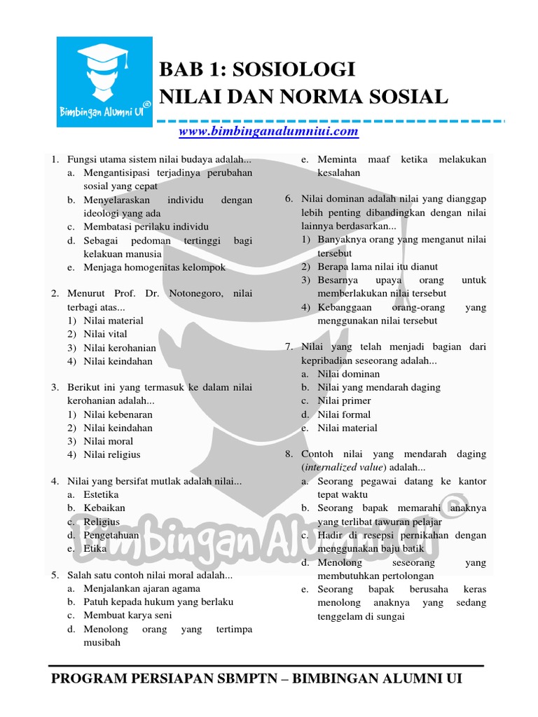 Nilai moral yang dijalani oleh masyarakat secara luas ini kerapkali digunakan untuk mengatur pola perilaku menjalani kehidupan sosial. Bertens etika memiliki definisi yaitu nilai serta norma moral yang merupakan suatu acuan untuk umat manusia baik secara individu maupun kelompok dalam bertingkah laku di kehidupannya. Berjalan dengan menundukkan kepala ini merupakan ajaran yang sudah diturunkan oleh nenek moyang tujuannya adalah untuk memberikan penghormatan kepada orang yang lebih tua. Nilai moral yaitu nilai nilai didasarkan pada pendidikan moral atau budi pekerti masyarakat. Biasanya di dalam karya sastra ada banyak sekali nilai nilai kehidupan yang bisa kita ambil yaitu nilai moral sosial religius budaya pendidikan etika estetika politik patriotik psikologi ekonomi historia dan sebenarnya masih ada banyak lagi. Jadi pengertian nilai kehidupan adalah nilai nilai yang sangat mempengaruhi tindakan seseorang.