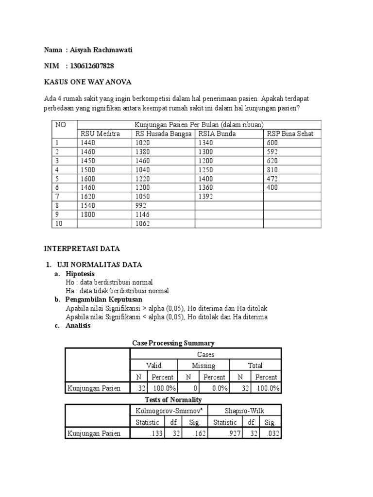 Setelah adanya perlakuan selama satu semester kemudian dibandingkan hasil belajar semua kelas 6 a. Download bab 1 pengantar statistika. Berikut akan saya berikan contoh one way anova dalam penggunaannya menggunakan aplikasi spss. Contoh soal anova one way anova bagian ipos ini adalah lanjutan contoh soal di bagian i di mana pada pos ini saya akan mengajarkan bagaimana cara membaca analisis uji anova. Maka dilakukan penelitian dengan menggunakan lima macam jarak tanam. Saya ingin bertanya saya kurang paham dengan one way anova dari dosen saya bilang kalu f hitung f tabel maka tidak usah uji lanjutan duncan tetapi pada tukey terlihat ada signifikan yang datanya ada tanda bintang.