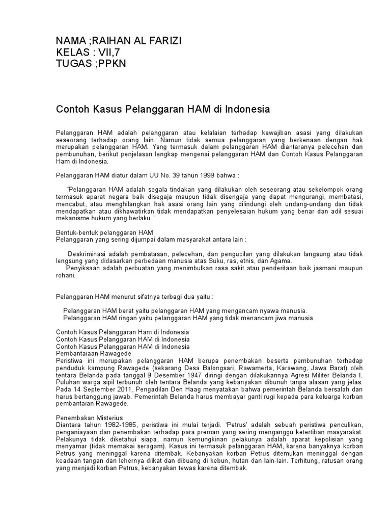 Contoh pelanggaran ham ringan lengkap. Kasus pelanggaran ham pembunuhan munir 5. Contoh pelanggaran ham ringan di antaranya ialah. Pengertian ham macam macam ham contoh pelanggaran ham dan pelanggaran ham di indonesia sejak lahir setiap manusia sudah mempunyai hak asasi yang dijunjung tinggi serta diakui semua orang. Kasus pelanggaran ham di dunia internasional. Contoh pelanggaran ham hai sahabat hamparan. Pelanggaran ham ringan adalah kebalikan dari pelanggaran ham berat yaitu pelanggaran yang tidak mengancam dan menghilangkan nyawa seseorang pelanggaran ini hanya bersifat kejahatan terhadap materi umumnya dan terhadap fisik akan tetapi tidak sampai mengancam atau menghilangkan nyawa seseorang artinya tidak berkaitan dengan hilangnya nyawa seseorang.