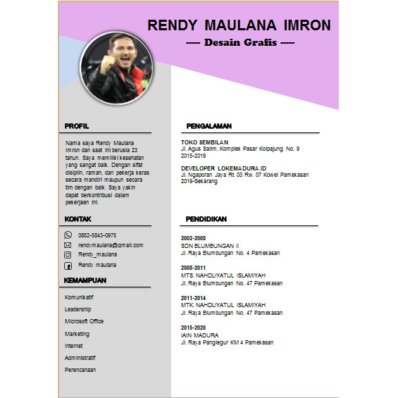 Contoh Template Cv Download Cv Format Doc Dan Pdf