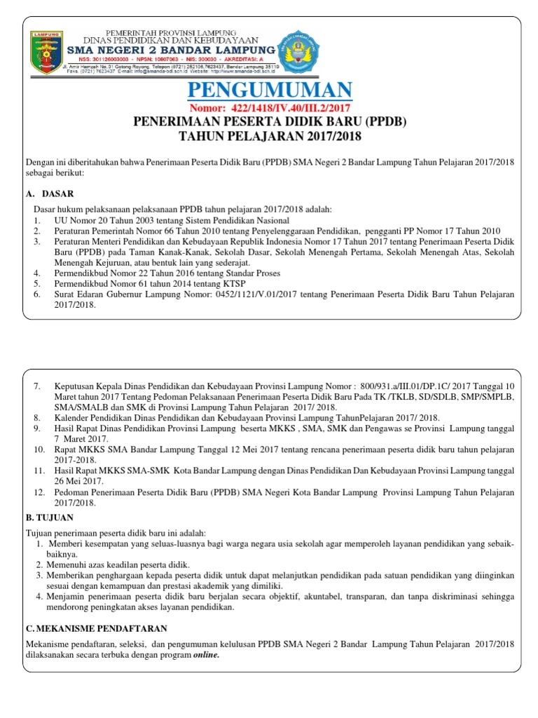 15 contoh surat pengumuman perusahaan sekolah dan instansi pemerintahan surat pengumuman merupakan sebuah contoh surat yang biasanya digunakan untuk memberitahukan sesuatu hal kepada khalayak ramai atau kepada orang lain. Tentunya ketika akan melihat pengumuman hasil seleksi ppdb online ini setiap orang tua akan mendoakan yang terbaik untuk anaknya agar bisa lulus dan diterima di sekolah favorit impiannya. Contoh pengumuman penerimaan peserta didik baru ppdb sd smp sma.