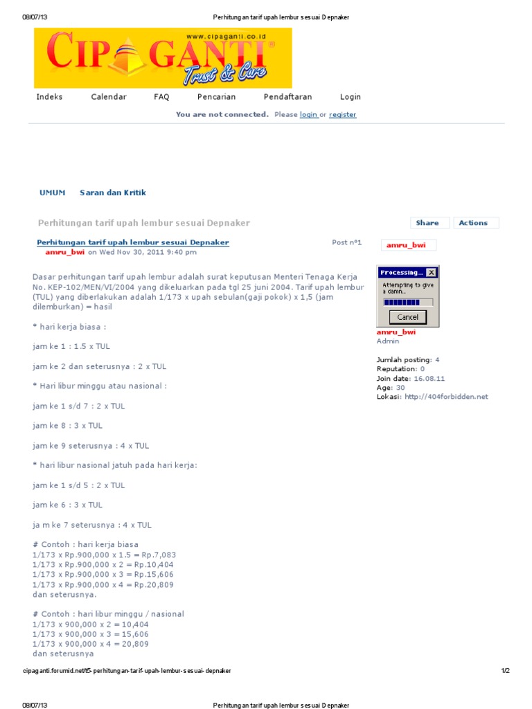 13 tahun 2003 tentang ketenagakerjaan pasal 77 ayat 2 huruf a dan b waktu kerja yang benar adalah tujuh jam dalam satu hari dan 40 jam dalam satu minggu untuk enam hari kerja. Perhitungan lembur sesuai peraturan depnaker upah kerja lembur adalah upah yang diterima pekerja atas pekerjaannya sesuai dengan jumlah waktu kerja lembur.