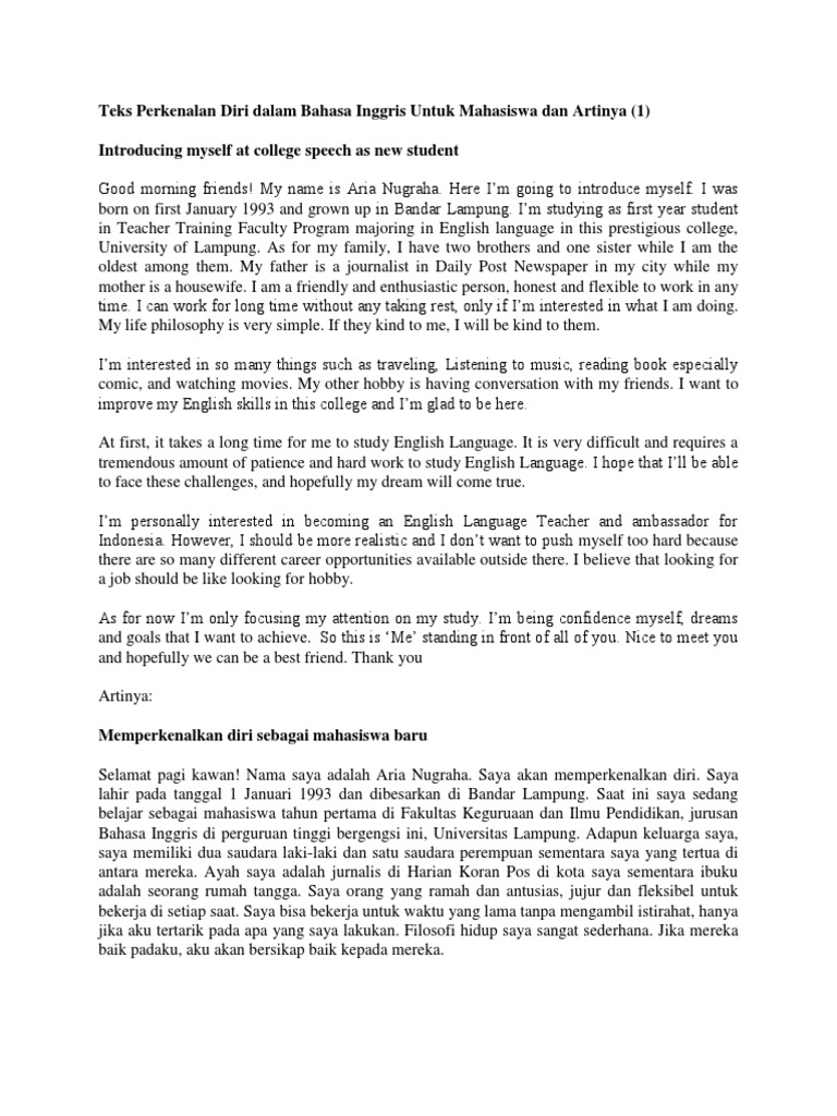 Contoh Teks Perkenalan Diri Dalam Bahasa Inggris Beserta