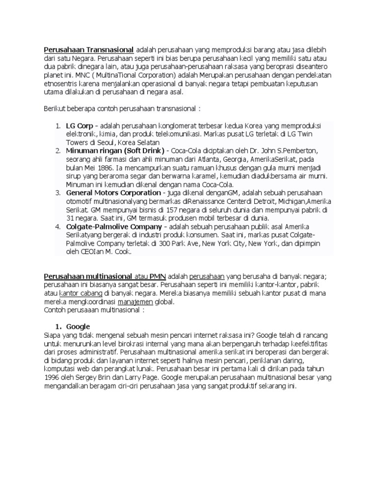 Perusahaan multinasional disebut juga dengan pmn atau multinational corporation mnc. Lihat ketentuan penggunaan untuk lebih jelasnya. Baik itu kantor pabrik maupun kantor cabangnya bisa ditemui di banyak negara. Contoh perusahaan multinasional di indonesia. Ketentuan tambahan mungkin berlaku. Ciri ciri kelebihan dan kekurangan perusahaan multinasional.