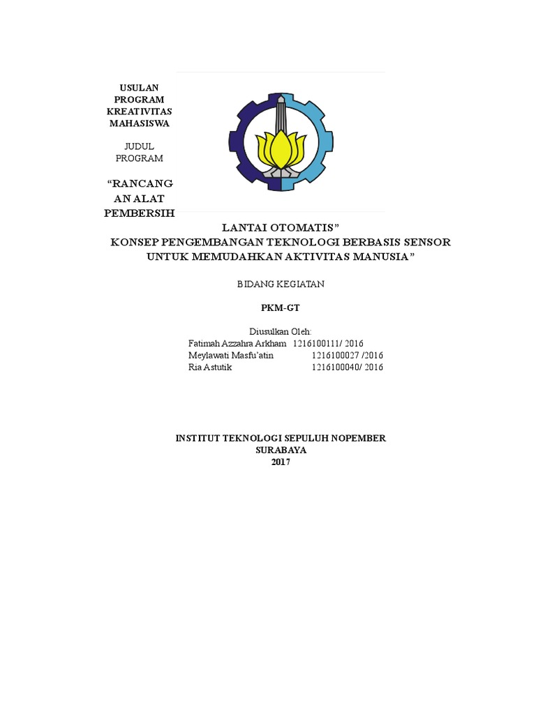 Mahasiswa bidang kegiatan gagasan tertulis pkm gt telah diselesaikan dengan baik. Salah satu kajian tentang sistem informasi kegiatan kampus berbasis android. Merancang dan membuat teknologi tepat guna mesin kukus telur asin untuk meningkatkan profit pada mitra ud doa bunda sidoarjo nama mahasiswa. Academiaedu is a platform for academics to share research papers. Gagasan dalam karya tulis ini dituliskan agar berguna untuk meningkatkan moral pendidikan teknologi informasi dan perilaku generasi muda. Hardo wahyudi mohammad ainul yakin astiningsih nurul aini santi wulan sari.