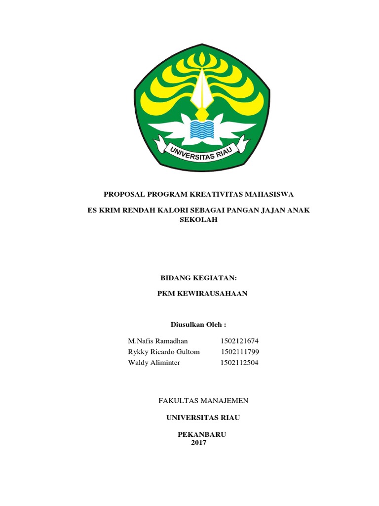 Contoh proposal kewirausahaan bagi kalian yang mungkin tengah mencari contoh proposal makanan untuk memenuhi tugas mahasiswa ataupun untuk pengajuan proposal usaha pribadi. Kebetulan pada artikel kali ini saya akan memberikan contohnya secara lengkap kepada kalian semua. Contoh proposal bisnis minuman proposal bisnis prakarya dan kewirausahaan. Pkm k kopi wah kopi rasa buah. Komoditas usaha yang dihasilkan atapun diusulkan mahasiswa dapat berupa. Nur cholifah 140531100097 2014 lutfiani 140531100095 2014.