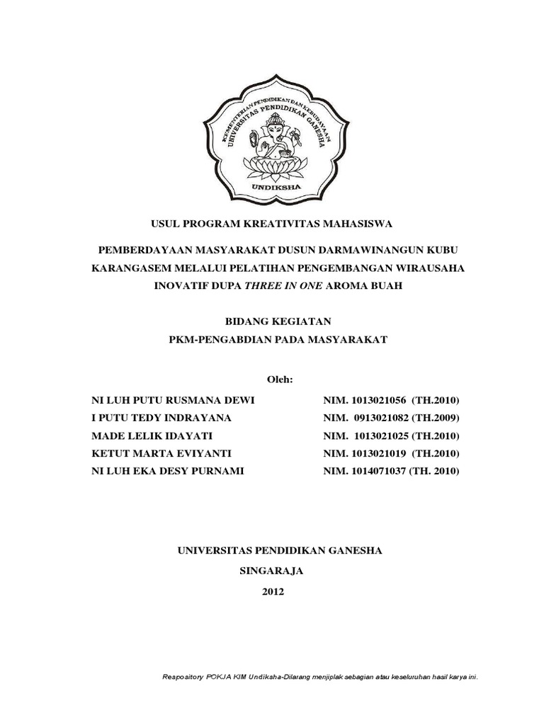Mungkin temen temen juga sudah mengikuti pkm di di kampus masing masing. Contoh proposal pkm 5 bidang tahun 2018 didanai 2019. Pkm pengabdian kepada masyrakat. Pkm psh proposal efektivitas konferensi pers satu pintu terhadap bencana di indonesia. Proposal program kretifitas mahasiswa. Pkm m proposal eduaction.