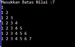 Statement adalah bagian kode program yang akan diproses secara terus menerus selama proses perulangan berlangsung. Oia nanti angka tertingginya atau angka terakhirnya ditentukan oleh yang ngejalani guys. Apabila anda memasukan angka 2 maka tulisan yang akan muncul adalah anda memilih pemrograman c. Seperti yang kita tahu jika kita sebelumnya sudah mengenal atau mempelari tentang looping perulangan dan nested loops perulangan bersarang kita dapat membuat suatu pola yang dapat digambarkan atau ditampilkan dalam bentuk segitiga. Pada artikel belajar java kali ini kita akan membuat contoh program tentang membuat segitiga bintang dan angka menggunakan bahasa pemrograman java. Hasil outputnya si simpel cuma angka angka berurutan yang membentuk segitiga tapi algoritmnya itu loh yang susah bisa bisa rambut sampai kriting gara gara algoritma d.