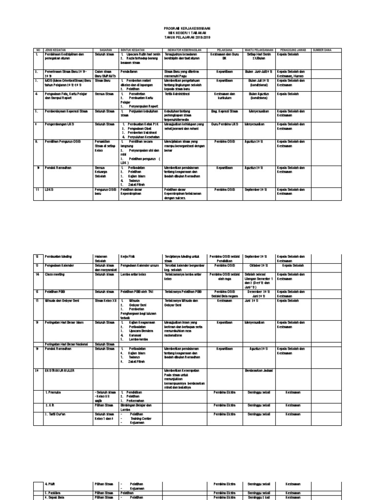 Dalam program kerja tersebut digambarkan diuraikan dan diinterprestasikan dalam segala bentuk kegiatan osis. Untuk bapak ibu yang ingin mendownload silahkan dibawah ini sudah kami sediakan contoh program kerja osis linknya dibawah ini osis. Contoh program kerja osis smp sma smk ini merupakan file terbaru yang akan saya bagikan secara gratis kepada anda pengurus atau anggota osis. Contoh program kerja osis smpsmasmk tahun pelajaran 20172018 itulah yang dapat kami bagikan pada kesempatan hari ini semoga saja apa yang sudah kami bagikan menjadikan salah satu file akhir pencarian bapak ibu untuk melengkapi administrasi di sekolah masing masing. Download tabel program kerja osis tabelprogramkegiatanosispdf downloaded 44480 times 116 kb. Di dalam sebuah organisasi perusahaan atau lainnya terdapat program kerja yang dimana program ini telah di susun sedemikian rupa untuk dilaksanakan.