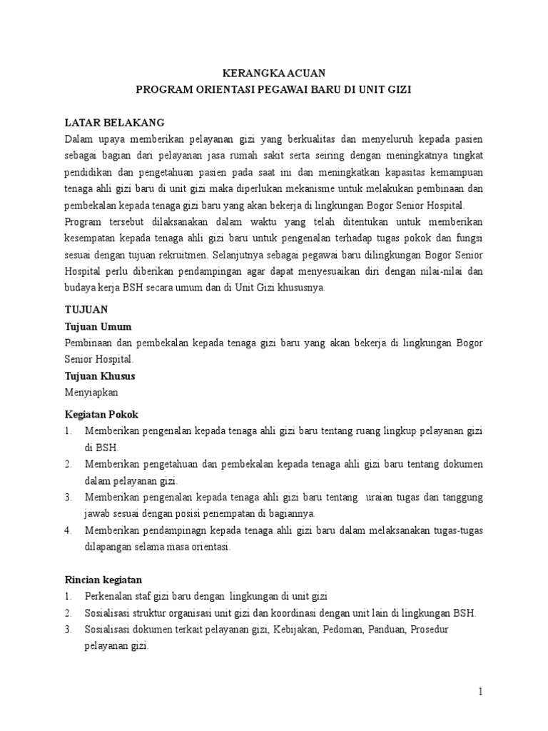 Contoh program orientasi karyawan baru. Orientasi karyawan adalah program yang bertujuan untuk pengenalan karyawan baru terhadap pekerjaan yang akan ditanganinya nanti. Bagi karyawan baru orientasi saat awal masuk kerja sangatlah penting untuk mengarahkan dirinya dalam beradaptasi dan mengerjakan pekerjaan. Beberapa organisasi memperkenalkan karyawan baru lewat forum santai apel pagi atau. Bahwa orientasi karyawan pada dasarnya merupakan salah satu komponen proses sosialisasi pegawai baru yaitu suatu proses penanaman sikap standar nilai dan pola perilaku yang berlaku dalam perusahaan kepada pegawai baru. Banyak pemberi kerja mengharuskan para karyawan baru menandatangani daftar periksa tersebut untuk menyatakan bahwa mereka telah diberitahu mengenai aturan dan prosedur yang bersangkutan. Point penting yang disampaikan kepada karyawan baru tersebut adalah pengenalan tentang letak georgrafis batam budaya sosial ekonomi infra struktur fasilitas umum olaharaga keagamaan kemasyarakatan.