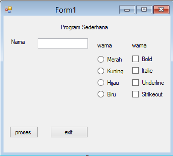 Pada contoh aplikasi ini saya menggunakan platform versi microsoft visual basic 2010 express namun pada dasarnya tidak ada perbedaan signifikan pada bahasa pembrograman yang digunakan pada visual basic net. Banyak para mahasiswa yang kebingungan mencari contoh program sederhana menggunakan visual basic akhir akhir ini. If text1text then msgbox isi dulu nama anda else msgbox nama saya text1text dan saya sedang belajar visual basic 60 end if. Sebelum kita mulai ini tampilan dari output yang akan kita buat. Berikut adalah link artikel kumpulan program vb 6 sederhana yang sudah di posting. Contoh program sederhana menu makanan posted by fadly rifai at 708 am.