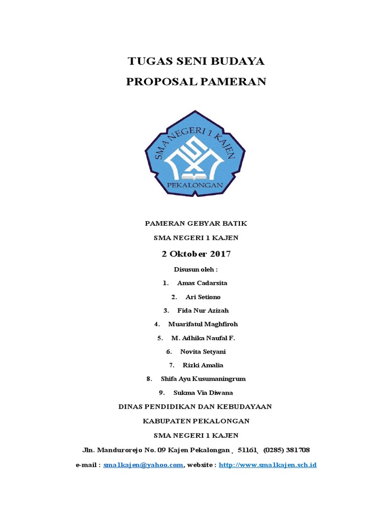 Berdasarkan pemikiran pemikiran yang ada di seni dan budaya terutama melalui pameran seni batik diharapk an masyarakat dapat menghargai karya orang lainsehingga siswa dapat mengembangkan minat dan bakatnya masing masingkhususnya dalam bidang seni batik. 0333 397306 website. Pameran seni batik. Contoh susunan proposal pameran karya seni proposal. Dan mohon maaf apabila terdapat banyak kesalahan dalam penyusunan proposal ini untuk itu saran dan kritik yang bersifat membangun sangat penulis harapkan. Huzaini benculuk cluring telp.
