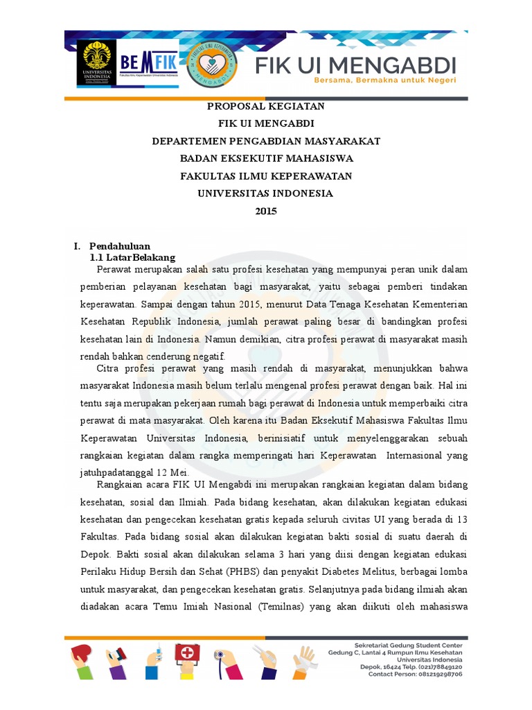 Contoh proposal pengabdian masyarakat bidang kesehatan. Sebagai catatan mengenai judul pemanfaatan daun sirih merah sebagai sikat jarban sosialisasi kesehatan dan pengajaran obat tradisional dalam upaya penuntasan gatal gatal di pondok pesantren darussaadah dalam pembuatan pkm pengabdian masyarakat karena melihat akan. Undang undang nomor 23 tahun 1992 tentang kesehatan pasal 3 menyebutkan bahwa pembangunan kesehatan bertujuan untuk meningkatkan kesadaran kemauan dan kemampuan hidup sehat bagi setiap orang agar terwujud derajat kesehatan masyarakat yang optimal. Menyelenggarakan program pendidikan tinggi kesehatan yang unggul dan kompetitif sebagai centre of excellent. Anggota pengabdian nama lengkap. Daftar pemenang pengabdian kepada masyarakat tahun 2016. Malang 20 oktober 1959 jenis kelamin.