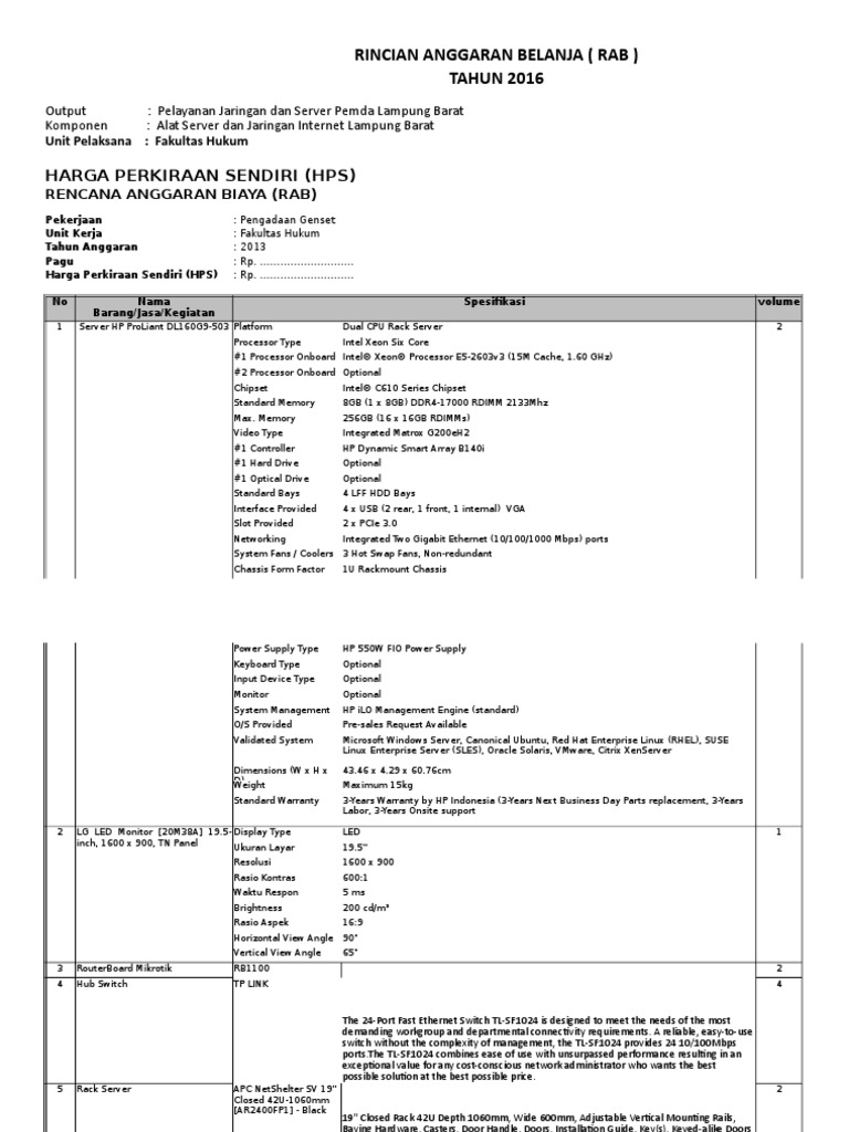 Uraian pekerjaan yang dibagi berdasarkan sub jenis pekerjaan. Lampiran contoh rab belanja modal p engadaan alat laboratorium mebuler dan sejenisnya 1 komputer hp pavilion p2 1150l intel core i3 2120t 2gb ddr3 500gb hdd sata dvdrw vga intel hd graphics gbe nic audio non os 4 5335000 266750 5601750 560175 6161925 24647700 5 2 laptop hp probook 4230s 6 pa intel core i5 2430m 2gb. Lampiran ba serah terima dokumen dan hasil pengadaan.