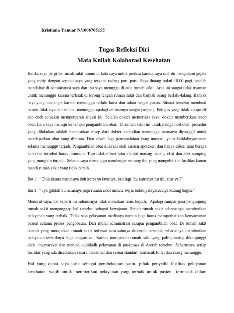 24 juni 2015 1234 4698 1 0 mohon tunggu. Refleksi diri anggita oksyrana ipe 7 1 1206243192 menjadi mahasiswa rumpun ilmu kesehatan adalah sebuah pilihan. Menutup cerita perjuangan kuliah saya di institut cap gajah dengan selembar ijazah bertuliskan predikat cum laude. Cuba perhatikan penulisan ini alhamdulillah syukur saya kepada ilahi dengan limpah kurnia dan keberkatannya dapatlah saya menyiapkan tugasan teknik baikpulih dan penyelenggaraan yang diberikan oleh pensyarah. Refleksi terhadap kegiatan orientasi mahasiswa kekuatan utama dari seorang sejarawan dan orang yang bergelut di bidang sejarah tentunya adalah tulisannya. Jadi refleksi tahun pertama sebagai mahasiswa dimulai dari sini.