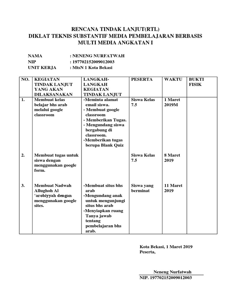 Contoh rencana tindak lanjut pembelajaran. Kondisi pembelajaran yang dilaksanakan oleh guru di kelas selama ini lebih banyak menggunakan metode ceramah dan penugasan sehingga pembelajaran terkesan guru. 85 guru dapat me nyusun perencanaan pembelajaran melaksnakan pembelajaran melaksnakan penilaian menganalisis hasil evaluasi dan menindaklanjuti nya g sesuai standar proses dengan baik bimbingan teknis. Untuk pelaksanaan rencana tindak kepemimpinan rtk berdasarkan program berjalan dengan baik. Pada postingan ini kami membahas apa yang dimaksud dengan rencana tindak lanjut agenda kegiatan laboratorium ipa biologi manfaatnya dan contoh atau format rencana tindak lanjut tersebut. Calon kepala sekolah sangat menyadari bahwa kemampuan guru dalam membuat media pembelajaran di sman i bola. Rencana tindak lanjut guru pembelajar setiap program pelatihan kegiatan akan bermanfaat jika jika program tersebut dilaksanakan.