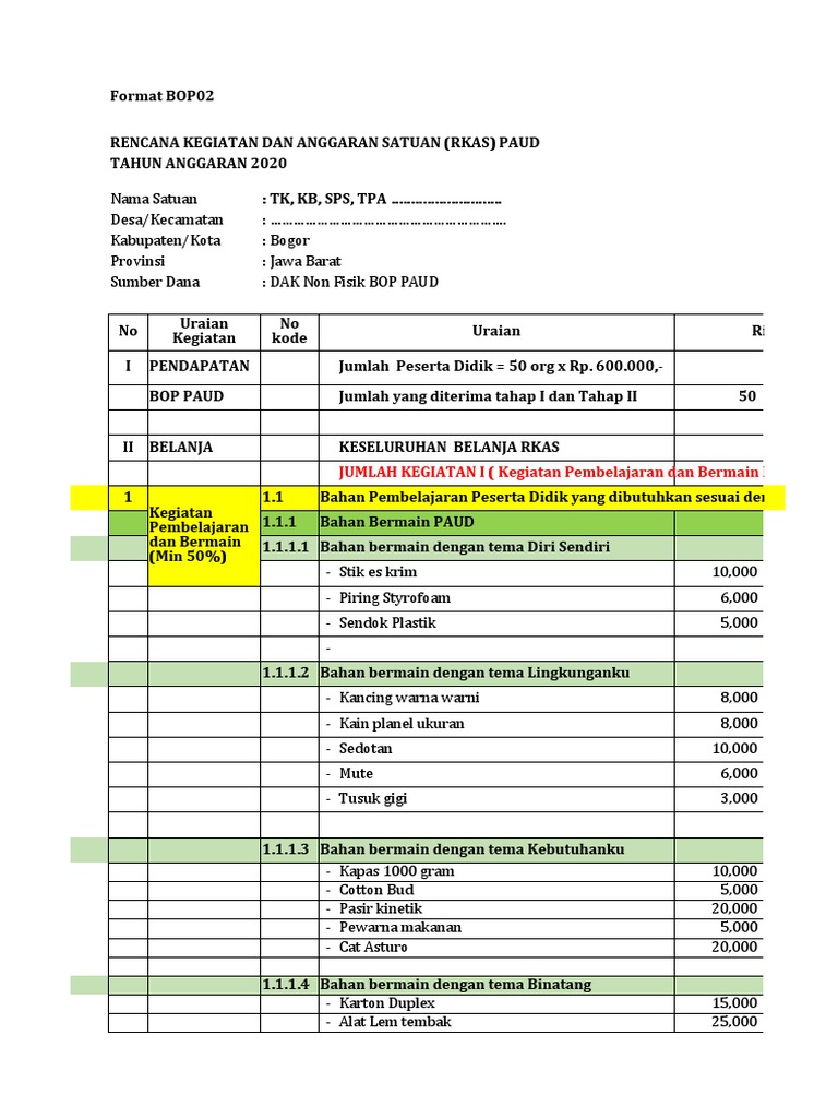 Contoh rkas bop paud 2018. Contoh rpph paud kurikulum 2013 tahun 2019 2020. Download contoh rkas bop paud tahun 2018 wednesday 18 april 2018 add comment hallo sahabat semuanya pada kesempatan ini kami akan berbagi file penting di tahun 2018 ini yaitu contoh rkas bop paud tahun 2018 yang bisa sobat manfaatkan ketika membuat rkas paud 2018 tahun ini. Kegiatan pembelajaran dan bermain dengan prosentase 50 kegiatan pendukung dengan prosentase 35 dan kegiatan lainnya dengan prosentase 15. Pernyataan tanggung jawab mutlak bop 2018. Contoh rkas bop paud terbaru. Contoh rkas bop paud tk tahun 2018 2019 excel.