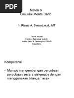 Simulasi monte carlo adalah metode yang digunakan dalam memodel dan menganalisa sistem yang mengandung resiko dan ketidak pastian. Tulisan ini menggunakan metode monte carlo dapat menyelesaikan permasalahan dengan sampling dari proses bilangan acak random number.