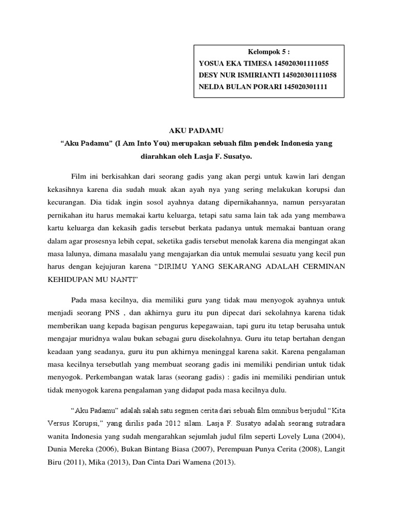 Berkat film pendek tersebut george lucas disebut sebagai sutradara visioner dan menjadi contoh skenario yang hebat. Untuk kali ini saya akan membahas tentang contoh naskah sinopsis film lengkapsinopsis ini saya dapatkan dari salah satu situs penulis jpi. Andi seorang anak berumur 17 tahun yang tidak memiliki harapan lagi untuk melanjutkan sekolahnya di tingkat sma karena biaya yang terbatas. Walaupun hanya berdurasi 5 menit 10 menit sampai maksimal 30 menit sebuah film pendek ini harus dibuat sepadat mungkin. Berkat dorongan asisten wedana ndoro seten ia bisa pergi ke sekolah dan kemudian menjadi guru desa. Sebelumnya mari kita berkenalan dahulu dengan apa itu sinopsis novel.